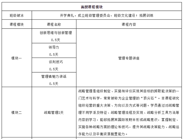 本课程以深圳大学MBA核心课程为基础,汇聚深圳大学优秀师资力量,结合学员实际需求,着重提升学员的系统管理技能、加深学员对现代管理的认识,培养既具有国际视野、又深谙本土管理实践的高层管理人才。