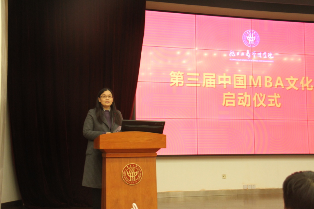专业学位教育中心主任王文杰教授首先在启动仪式上致辞。她带我们回顾了旭日工商管理学院自1993年成立以来取得了众多标志性的成果。MBA项目自1998年起,截至目前已经培养了5000余名毕业生,开创了多项目运作、差异化培养的特色教育之路,在多个专业项目中收获累累硕果。在东华MBA文化节成功举办了十几届的基础上,自2017年与上海MBA联谊会共同发起中国MBA文化节,王主任希望同学们能积极参与到本届文化节的各项活动中去,不断拓展视野。