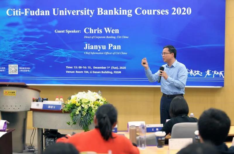 【中国MBA教育网讯】12月1日,2020复旦-花旗金融实务课程第四讲在李达三楼104教室如期进行。花旗中国企业银行部科技传媒及电信行业客户部董事问晶玮女士和花旗银行(中国)有限公司首席信息官、花旗中国信息科技部主管暨花旗集团大中华地区企业银行财资与贸易金融部信息科技主管潘建玉先生,分别聚焦 “企业银行业务”和“开放银行业务”等主题为MBA学生们带来精彩而深刻的实操课程。