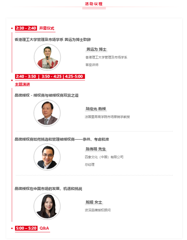 第二场工作坊将以实战技巧为出发点,从战略性及全方位管理品牌的角度,聚焦品牌授权的战略目的、原品牌与授权品牌的关系,消费者对授权品的感知和评估,及最终对品牌体验及品牌权益的影响。