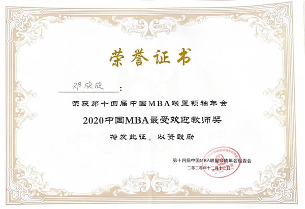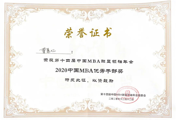 在广东工业大学学院领导的大力支持、同学们的共同努力下,广东工业大学MBA在本次盛会共获得五项荣誉:广东工业大学MBA招生办主任邓欣欣老师荣获“2020中国MBA最受欢迎教师奖”、广东工业大学2019级MBA学生何凯锐同学和曹惠红同学荣获“2020中国MBA优秀干部奖”、广东工业大学2020级MBA学生信永升同学和林楚玉同学荣获“2020MBA新锐100奖”。 以上奖项是对我院MBA师生的充分认可和肯定,我们将继续秉承“学以致用,创新为魂”办学特色,培育具有责任担当(responsible)、崇法尚德(ethical)、勇于创新(innovative)、勤勉务实(diligent)的REID型商界精英,努力提升MBA品牌价值和社会影响力,共同把握时代机遇。