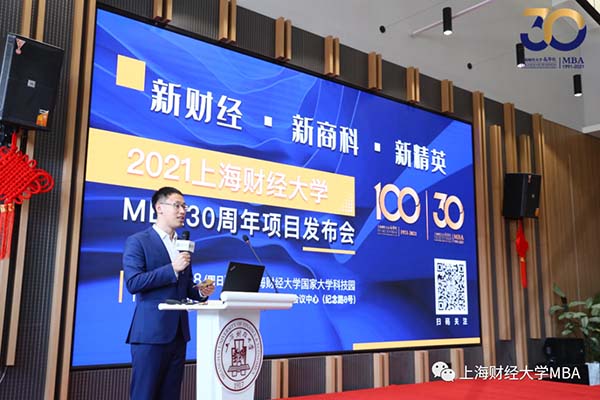 2021年4月18日,“新财经·新商科·新精英”上海财经大学MBA30周年项目发布会在上海财经大学国家大学科技园国际会议中心隆重举行。本次发布会采用线上线下同步呈现的方式进行。上海财经大学商学院常务副院长、MBA中心主任魏航教授,上海财经大学商学院MBA中心学术主任、人力资源系主任陈志俊教授,摩根士丹利(中国)股权投资管理有限公司董事总经理许磊先生出席发布会并发表主题演讲,带领广大师生、校友和教育机构与会者们洞察新财经、洞觉新商科、洞见新精英,并详细解读2022年入学MBA招生政策。此外,《上海财经大学MBA项目30周年宣传片》也于发布会上震撼首发。