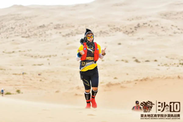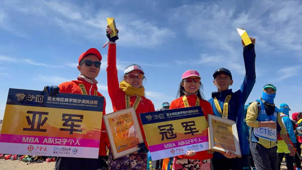 北大汇丰商学院获单人成绩前十强情况如下: 肖彩凤(首届超A队110公里女子个人冠军)、尹伦琴(A队70公里女子个人冠军)、黄芳(A队70公里女子个人亚军 )、刘彬(B队70公里男子个人第九名)、杨群(C队36公里男子个人第五名 )。 亚沙最高荣誉奖项“沙鸥奖” 这是一场关于团队协作的盛赛, 这是一场关于坚持到底的伟事, 这是一场关于突破自己的苦修。 三天两夜的苦行之旅,北大汇丰沙10代表队的每一位队员秉承了“完全人格,首在体育”的拼搏精神,第六次勇夺亚沙最高荣誉沙鸥奖,表现抢眼。 感谢每一位沙10勇士的不懈努力和辛苦付出,一年又一年,北大汇丰商学院的沙赛队员们再次用汗水和勇气彰显了北大汇丰的耀眼光芒。 也许风沙吹过,沙漠里不会留下你们拼搏过的足迹,但是,每当我们回头看那些定格的画面,依然会热血沸腾。让我们铭记这一刻的荣耀,身为北大汇丰人的骄傲! 沙10,再见。 沙11,明年见! 北大汇丰沙10精彩瞬间: 特别鸣谢 北京大学汇丰商学院 欧阳良宜 老师 李志义 老师 沙9领队团 匠人车房 原 林(2015级MBA) 张少宾(2018级MBA) 杨 磊(2018级MBA) 刘庆秋(2018级MBA) 胡云坤(2019级MBA) 曹 晟(2019级MBA) 徐远雷(2019级MBA) 吴晓昀(2019级MBA) 邓雪峰(2019级MBA) 钟 涵(2019级MBA) 徐期林(2019级MBA) 丁一斌(2020级MBA) 曾培恒(2020级MBA) 代 祥(2020级MBA) 于海泳(2020级MBA) 卢俊杰(2020级MBA) 于少华(2020级MBA) 陈 桦(2020级MBA) 黄维铭(2020级MBA) 李志伟(2020级MBA) 戴 蕾(2020级MBA) 马 骁(2020级MBA) 赵婉玉(2020级MBA) 孙晓霜(2020级MBA) 王 菁(2020级MBA) 刘 娟(2020级MBA) 曹瑾瑜(2020级MBA) 马 飞(2020级MBA) 胡 颖(2020级MBA) 青 高(2020级MBA) 叶 豪(2020级MBA) 撰稿:殷倩 2020级MBA 摄影:邓超 2020级MBA