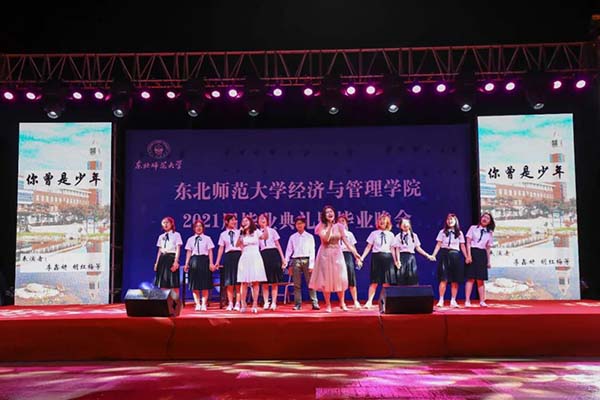 19日晚6点30分,经济与管理学院2021届毕业晚会正式开始。东北师范大学经济与管理学院党委书记房国忠教授发表了讲话。