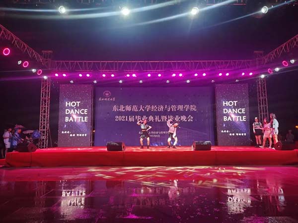 风雨渐弱,毕业晚会重新开始,经管毕业学子们带来一个个精彩纷呈的节目。