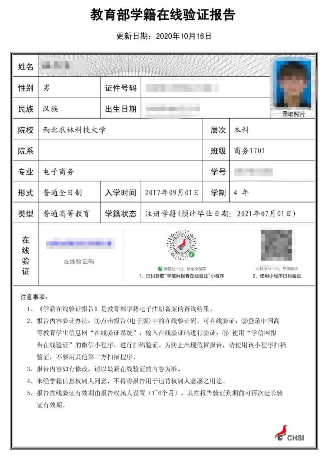 5.报考陕西省内、外招生单位的西北农林科技大学应届本科毕业生;在陕西省非报考点高校学习,报考西北农林科技大学的应届本科毕业生;在杨凌高校学习,报考西北农林科技大学或省内非报考点的招生单位或报考省外招生单位的应届本科毕业生须上传:(1)“中国高等教育学生信息网”的《教育部学籍在线验证报告》;(2)证明学生身份的学生证。