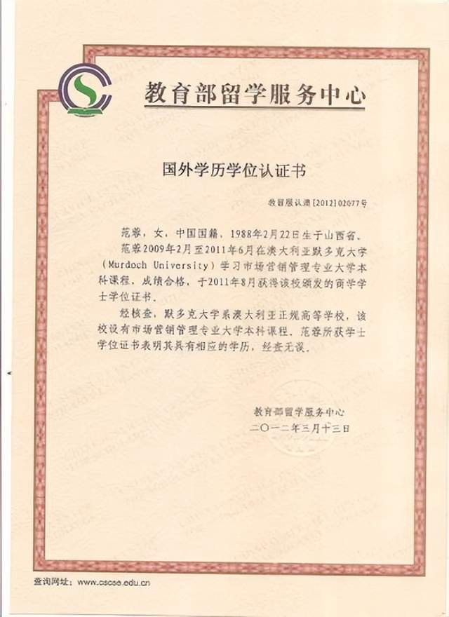 7.教育部学历证书电子注册备案表:示例如下图。