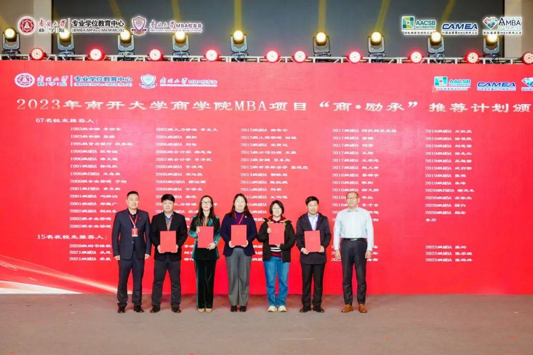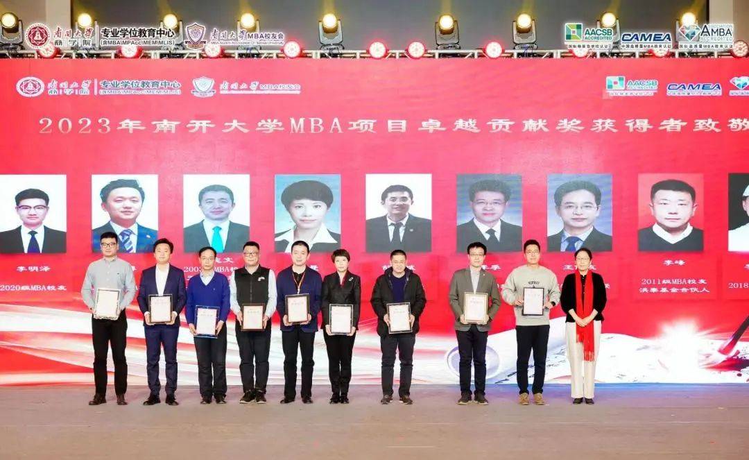 2023南开大学MBA项目卓越贡献奖获奖代表:南开大学商学院教授--胡望斌\李季\徐曼\王健友;南开大学MBA校友--尚志文\李峰\田博\李晓松\李明泽