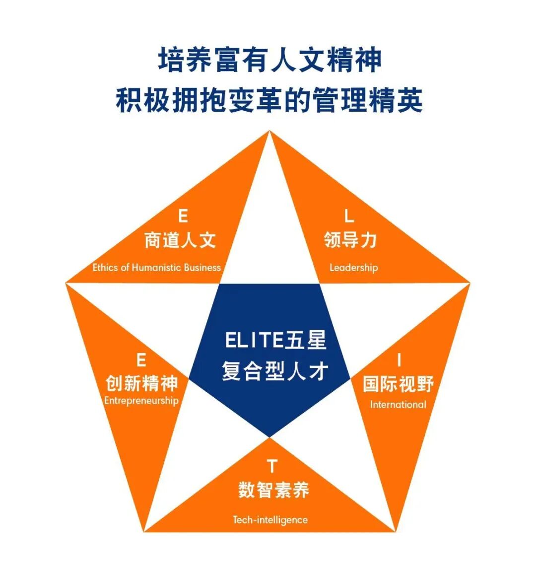 聚焦企业创新管理、数字智能管理、教育运营与管理创新、文化产业创新管理四大项目方向,精准对接行业需求;塑造具有商道人文、领导力、国际视野、数智素养、创新精神的ELITE五星复合型管理人才,通过“引进来”(业界专家进课堂)与“走出去”(企业参访、行动学习)深化理论与实践融合,构建双师教学+案例开发+实践基地+赛事赋能+职业发展的产教融合培养体系。