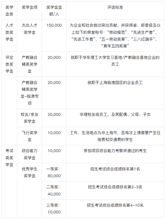 4.飞行奖学金:申请飞行奖学金需为工作及生活为非上海市的学生,需另提供充分证明。项目根据单位证明、1年以上非沪社保证明、外地居住证明(住房或租房证明)、来沪往返交通等证明材料进行评定。如入学后发现所提交材料与实情不符,终止发放该项奖学金。