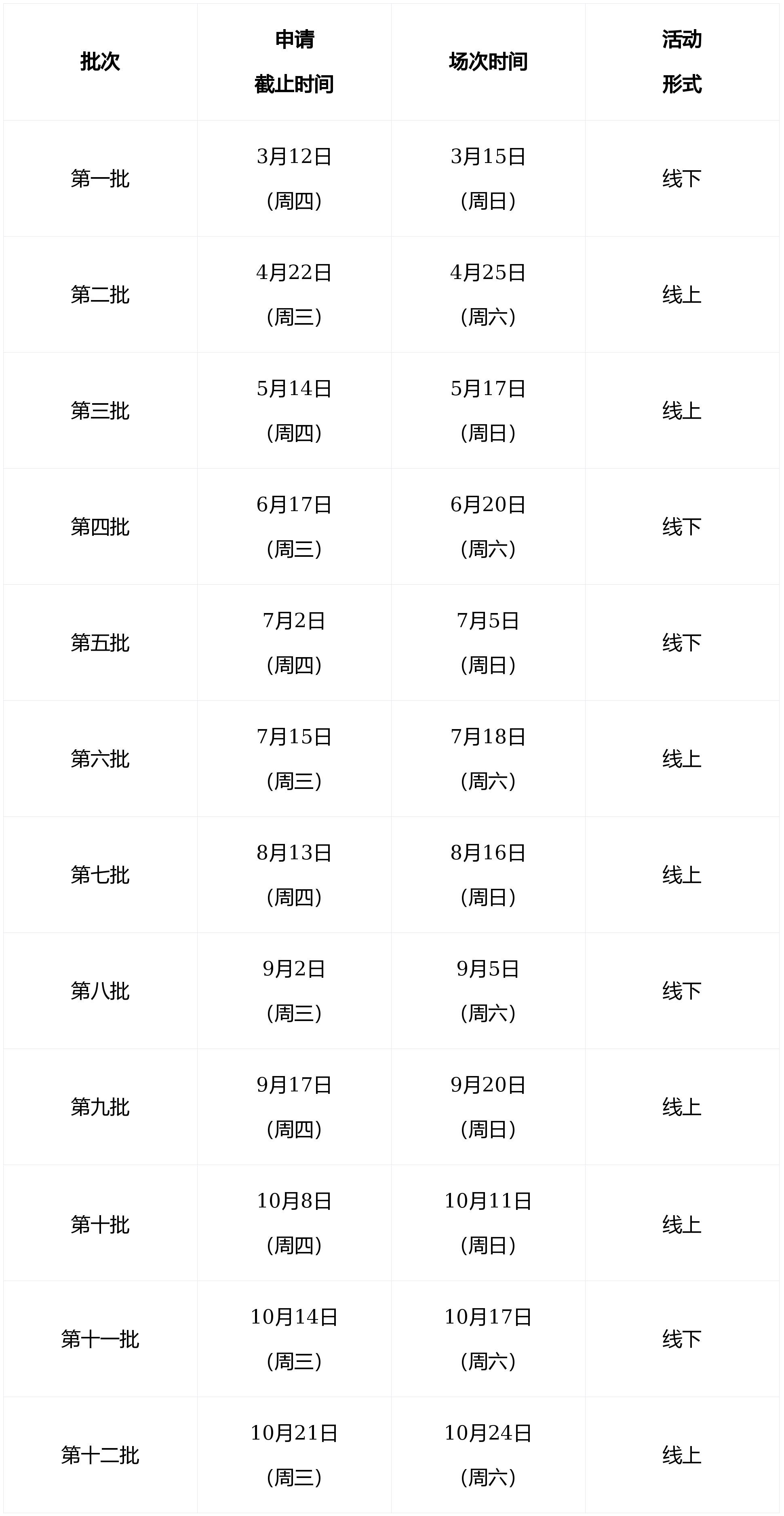 注:其他新增活动场次另行通知(实际场次时间以报名系统为准)。