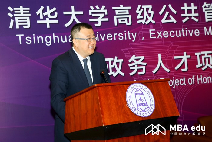 杨斌在致辞中表示,这个项目是中国内地高校中首个面向香港特别行政区招生的高级公共管理专业硕士学位项目,清华大学很高兴能成为这项颇有意义的专业学位教育项目的开创者。在过去的21年中,香港的发展日益与祖国的发展紧密地联系在一起,粤港澳大湾区的规划、全世界最长的跨海大桥港珠澳大桥的建设和“一带一路”倡议的提出等发展表明,香港需要更多知国情、懂港情,根植中国、面向世界的高级公共管理人才。他强调,培养一流人才是清华大学的重大使命。培养一流人才,离不开一流的教师队伍。近年来,清华大学师资队伍水平稳步提高,这为清华大学创办该项目提供了充足的师资力量和优越的教学科研条件。最后,他表达了对项目将会培养出的面向新时代中国改革实践前沿及香港治理实际需求的高级公共管理人才的殷切期望。