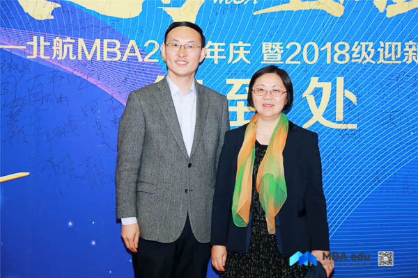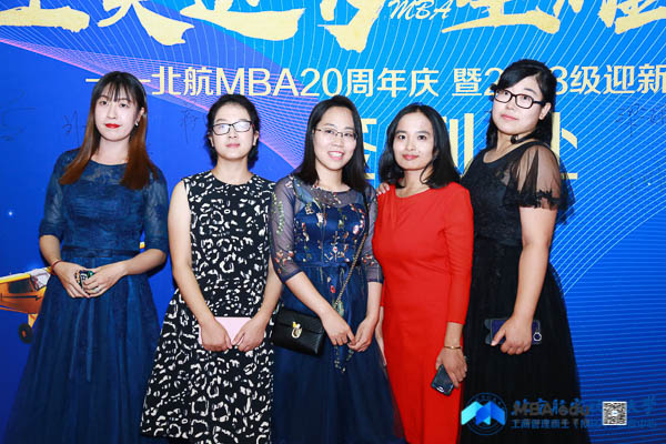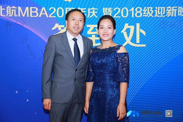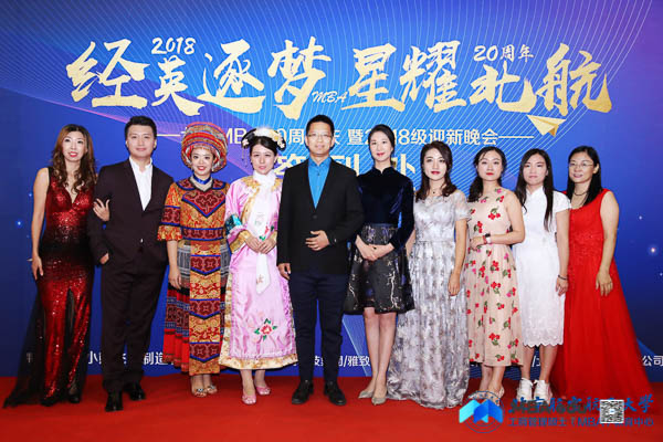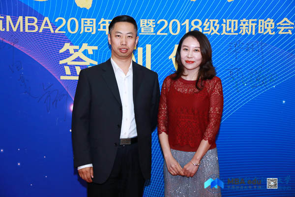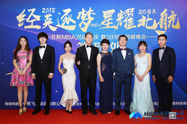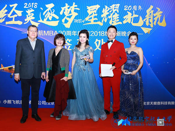 北京航空航天大学经济管理学院院长范英,党委书记刘志新,副院长秦中峰、郑海涛,研究生指导主任单伟, MBA教育中心主任田东文,副主任罗开平、梁娜,学生工作办公室主任衣萌,教师代表武欣、张思萱、王楚男,北京航空航天大学MBA校友会会长蒋占华、副会长祖国强,校友会秘书处刘雁,校友代表蒋晓飞、孙奇,西南交通大学经济管理学院副院长郭强,西南交通大学经济管理学院MBA教育中心副主任何鹏, MBA联合会主席团代表以及赞助商北京万圣时尚科技集团董事长助理、党支部书记夏小雨共同出席本次晚会。晚会由2018级MBA学员胡婧、刘文硕、马亚男、张磊、何若兰、刘张颖异主持。晚会正式开始前,与会领导、嘉宾、师生纷纷走上红毯,在签名墙上签名并合影留念。