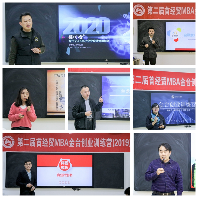 本期训练营自1月9日开营,持续四天,以创新创业核心技能培养为导向,围绕创业素质和创业能力提升、管理者核心技能训练、路演技巧训练、创业项目资本运作、热门项目剖析等内容,为广大首经贸MBA学子展开理论讲解和创业实训。